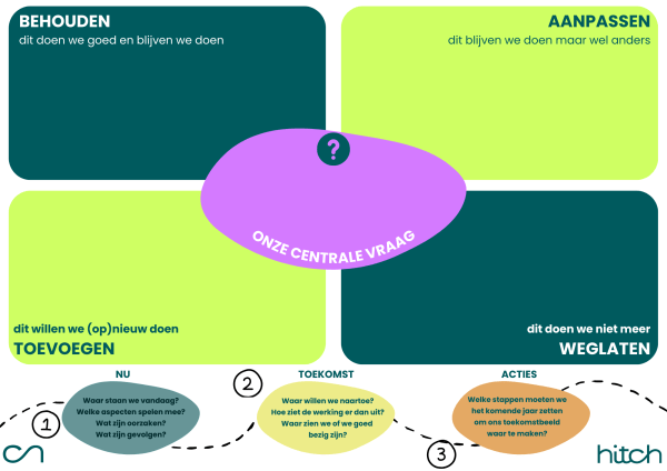 Vanuit een gevatte analyse voegt Hitch een theoretisch kader, een plan van aanpak en praktische handvatten toe aan de bevindingen van de participatiemomenten . Het wordt een iteratief proces waarbij het ontwikkelen van een gebruiksklaar model en de implementatie tegelijk aan de gang zijn. Elke stap bepaalt de volgende. Zo komen we samen in beweging. Van kort traject tot langdurige processen.